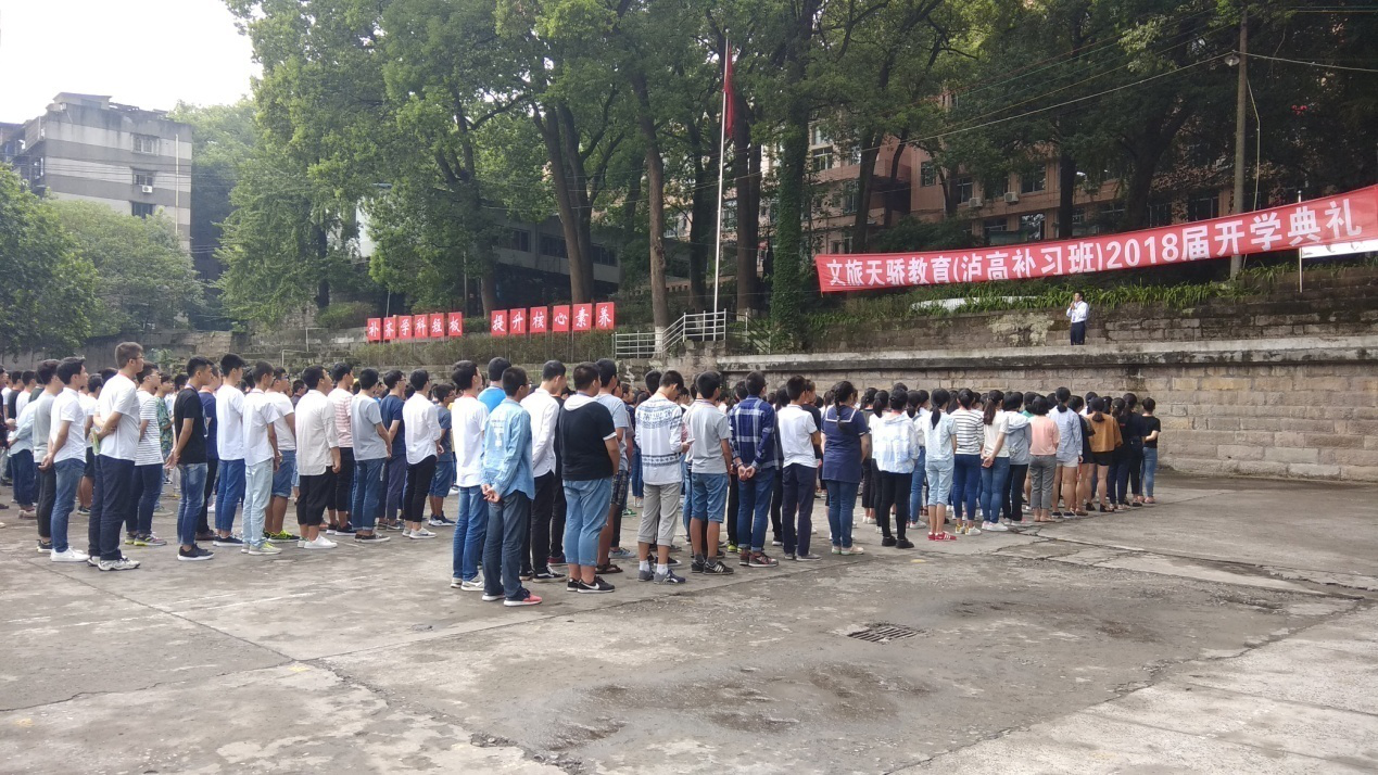 瀘州市江陽區文旅天驕文化藝術培訓學校高考補習班開學典禮 作者: 來源: 日期:2017-09-28 瀏覽次數: 次 【字體:小 大】 2017年9月1日,天驕教育2018屆高考補習班在優美的財經學校里正式開學了,學校堅持以“補齊學科短板,提升核心素養”的辦學理念,為學生提供最優質的教學服務。瀘州市文旅天嬌教育投資有限責任公司總經理兼天驕教育高培校校長游勤利、瀘州高中紀委書記羅德強、天驕教育高培校執行校長戴志華出席開學典禮。 【打印正文】