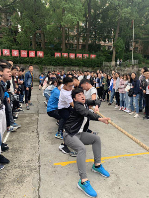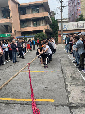 此次比賽共分成4個比賽小組,同學們紛紛以極大的熱情參與到此次活動中。當比賽的哨聲一響起,隊員們口中一起高呼著“一二,一二”, 雙手緊握長繩,憋足了勁拼命往后拉,班主任也在隊伍旁邊助陣加油,恨不得抓起繩子跟學生一起努力!班級內沒有上場的同學們自發組成啦啦隊為本班加油。號子聲、吶喊聲,此起彼伏,飄蕩在整個操場上空。