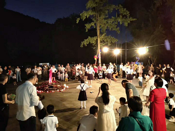 篝火晚會環節家長和孩子的臉上都洋溢著快樂的笑容,紅紅的燈籠、漂亮的蛋糕、熱情的仿真篝火,孩子每個快樂的瞬間都定格在哪一刻,讓人動容。