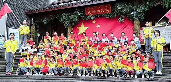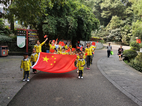 瀘州市江陽區天驕幼兒園開展“祖國媽媽我愛你”國慶節主題活動 作者: 來源: 日期:2019-09-27 瀏覽次數: 次 【字體:小 大】 9月26日,瀘州市江陽區天驕幼兒園開展了“祖國媽媽我愛你” 國慶主題活動。通過升國旗、唱國歌讓孩子們知道十月一日是祖國媽媽的生日,在游忠山公園過程中讓孩子們感受祖國的大好河山及濃濃的愛國氛圍! 最后在師生合唱的《我和我的祖國》中圓滿落下帷幕,讓幼兒感受到幼兒園這個大家庭的和諧與美好,感受我祖國媽媽的繁榮與強大! 【打印正文】