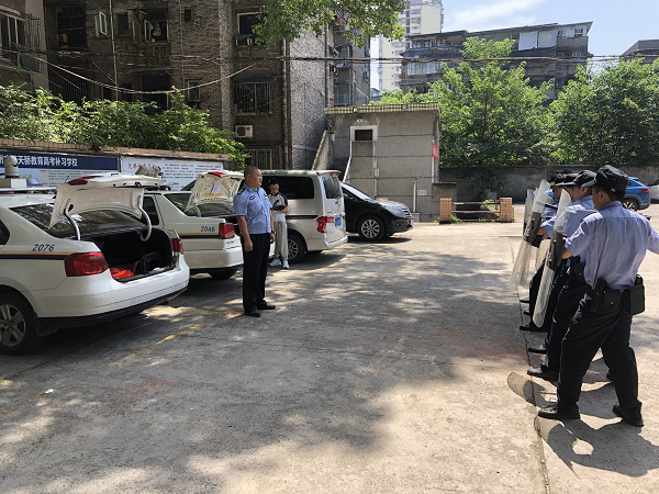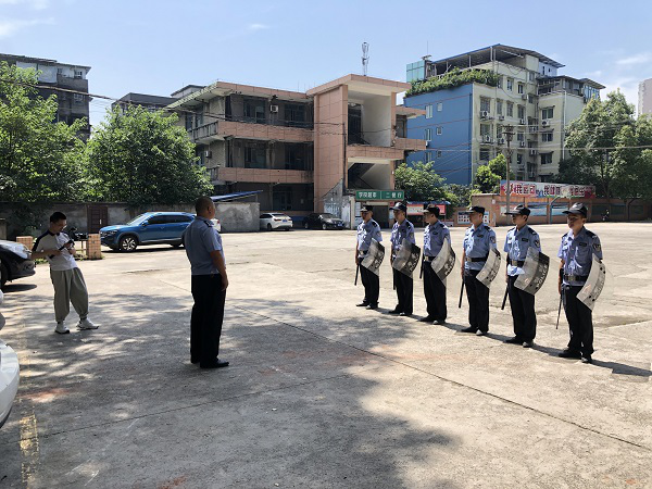 為了有效防范校園內(nèi)發(fā)生的暴力事件,加強(qiáng)職工安保人員對(duì)突發(fā)事件的防范意識(shí),6月8日,學(xué)校組織安保人員進(jìn)行校園防暴演習(xí)。