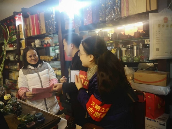 志愿者向城區商鋪承租戶宣傳