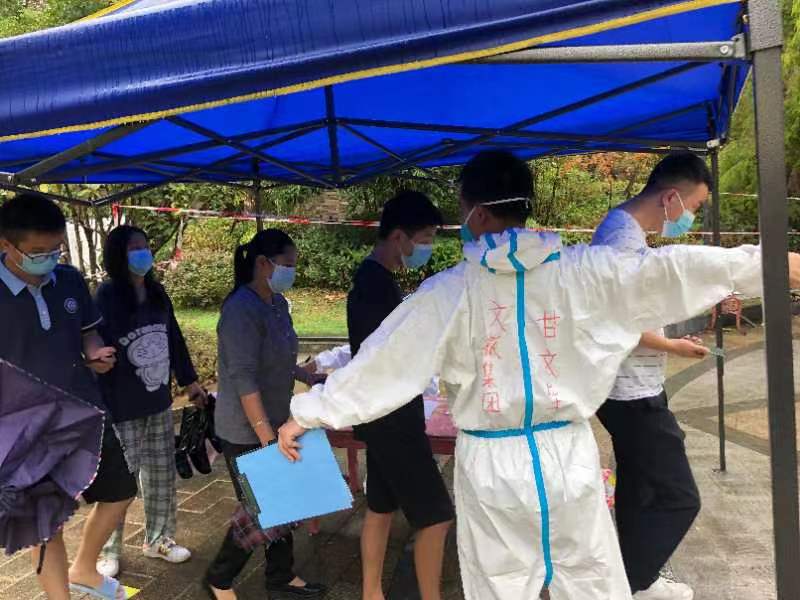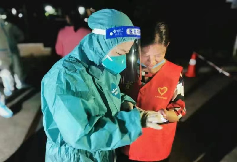 靜默期間,黃菊如一邊照顧小孩,一邊穿上防護服,頂著熊熊烈日,維持核酸檢測秩序,任勞任怨進行采集區(qū)消毒,同社區(qū)工作者、醫(yī)務(wù)人員、物業(yè)服務(wù)人員一起,迎難而上,連續(xù)奮斗在防控一線,化身為“天使白”“希望綠”。
