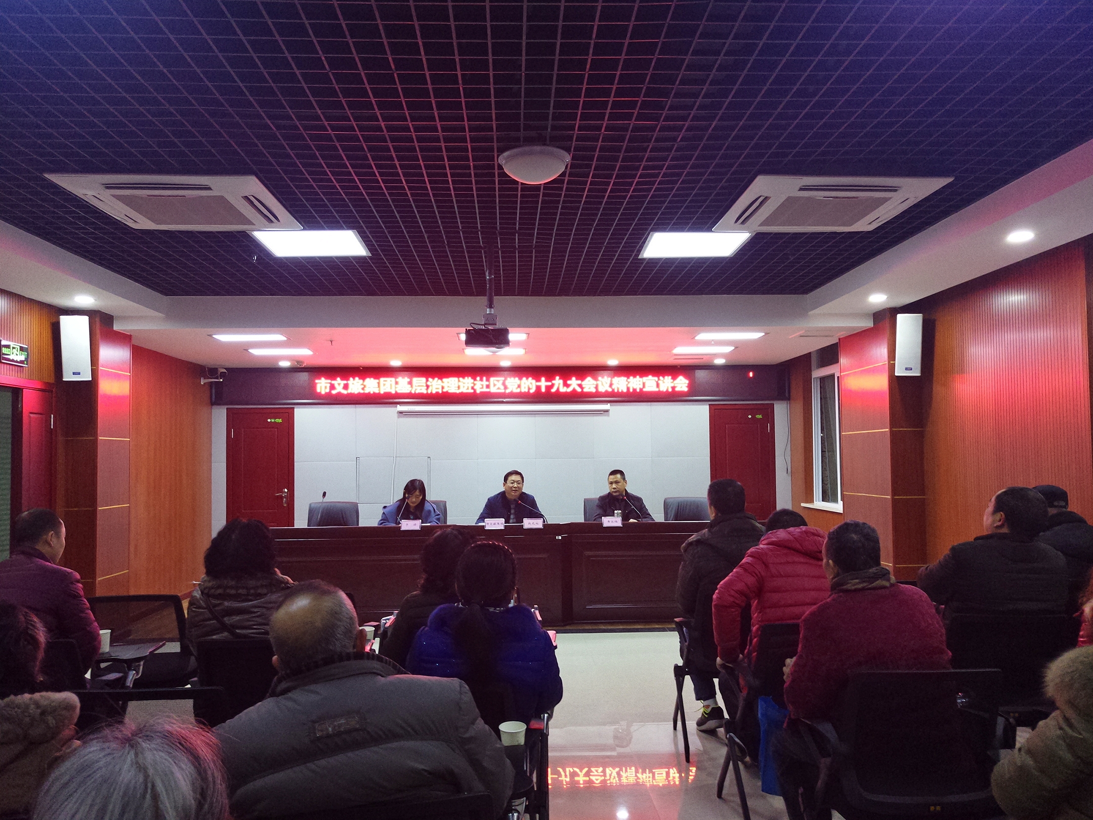 市文旅集團進社區宣講黨的十九大會議精神 作者:郭諭 來源: 日期:2017-12-29 瀏覽次數: 次 【字體:小 大】 12月29日上午,江陽區張壩街道沙坪社區、桂圓林社區組織開展黨的十九大精神宣講會,市文旅集團黨支部書記、董事長趙元柱到會并宣講。這場宣講會是市文旅集團學習貫徹黨的十九大精神,對市委、市政府關于 “加強基層治理”工作的積極響應。包保社區黨群干部、社區退休黨員、社區樓棟長、張壩景區旅投公司黨員等參加宣講會。 【打印正文】